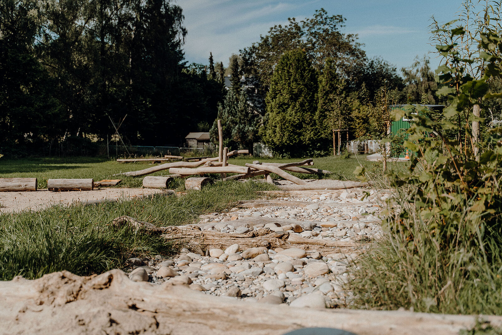Im Naturkindergarten braucht es nur wenig vorgefertigtes Material. Die Natur bietet alles, was Kinder für fantasievolles und kreatives Spiel benötigen: Stöcke, Steine, Erde, Wasser, Zapfen, Blätter, Blumen und Gräser werden zu Werkzeugen, Figuren, Bau- oder Rollenspielelementen.